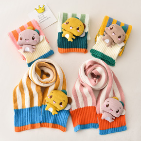 宝宝围巾秋冬季毛线婴儿围脖可爱小恐龙冬天保暖男童女...