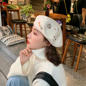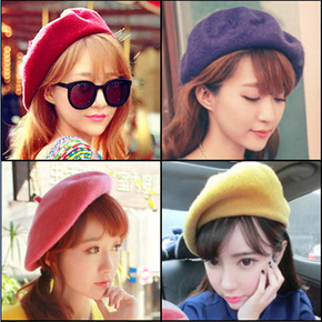 秋冬天百搭时尚贝雷帽子红英伦画家帽蓓蕾羊毛线女韩版...