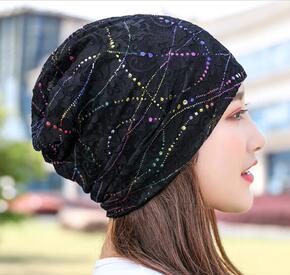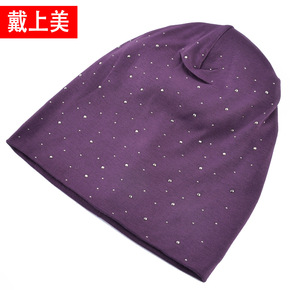 跨境专供 女士烫钻 套头帽纯色针织帽满天星秋冬保暖...