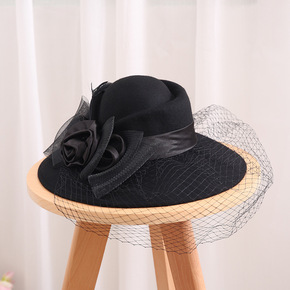 2019英伦赫本礼帽大檐羊毛毡毛呢帽子秋冬宴会女士...