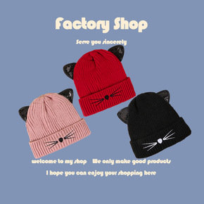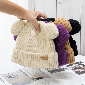 韩版ins可爱耳朵毛线帽女秋冬加厚保暖针织帽子日系...
