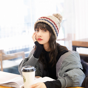 帽子女秋冬韩版加绒加厚月子保暖百搭潮毛线帽日系可爱...