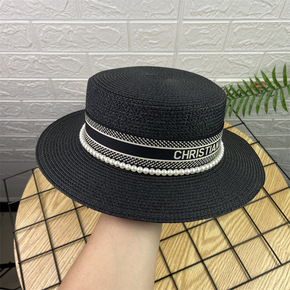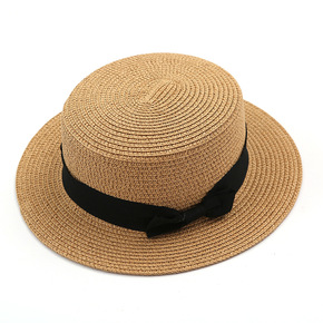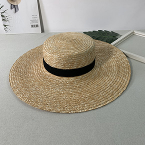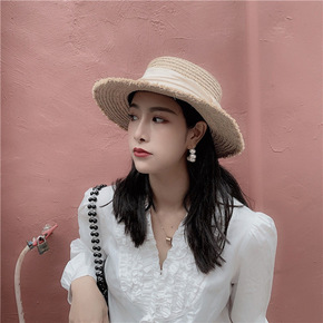 法式网红平顶草帽女夏天平沿防晒帽速卖通跨境太阳帽珍...