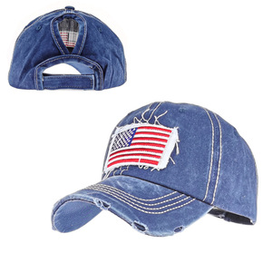 跨境外贸热销马尾破洞国旗绣花棒球帽马尾帽欧美潮弯檐...