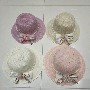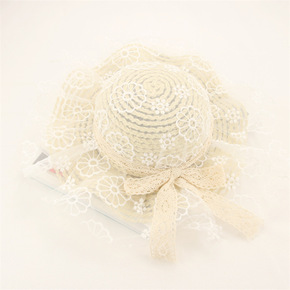 韩版夏季女士遮阳帽蕾丝蝴蝶结礼帽圆顶太阳帽 优雅简...