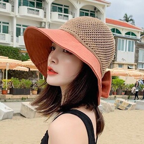 夏天女士防晒草帽超大檐平顶麦秆太阳帽韩版旅度假游沙...