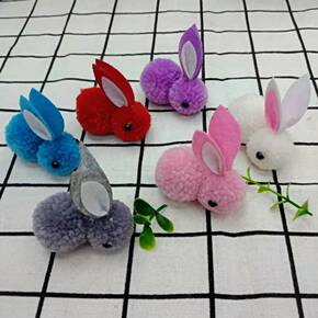 新款卡通毛毡立体兔耳朵可爱小兔子粗毛线毛球DIY手...