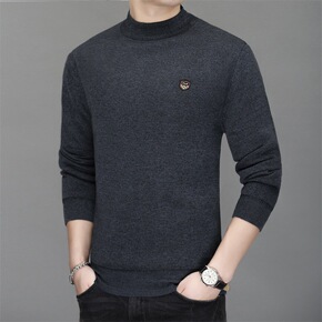 2021冬季新款针织衫男半高领提花中青年毛衣爸爸装...