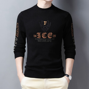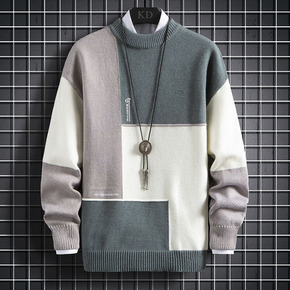 2021秋装外贸速新款男士圆领套头毛衣型男韩版修身...