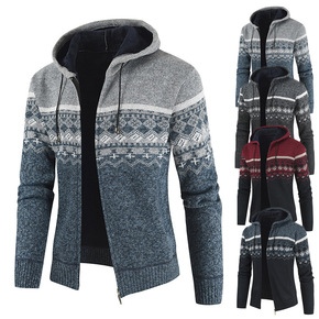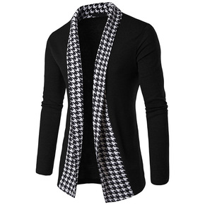 秋冬新款男毛衣格子门襟撞色韩版开衫针织衫外贸男士休...