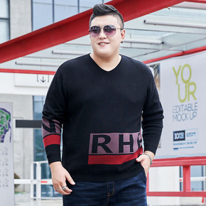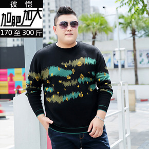 彼恺秋冬男士加肥加大码宽松休闲长袖圆领针织衫肥佬特...