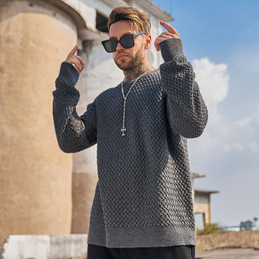 Y2152锦佑大码男装胖子圆领毛衣纯色一件代发源头...