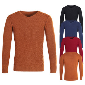 秋冬季男士V领毛衣中青年男装纯色时尚简约包芯纱针织...
