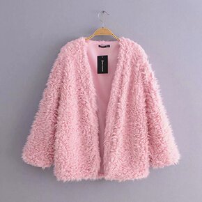 秋季新款女装欧美风长袖宽松纯色全身毛毛外套女式...