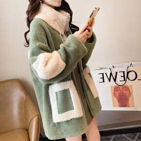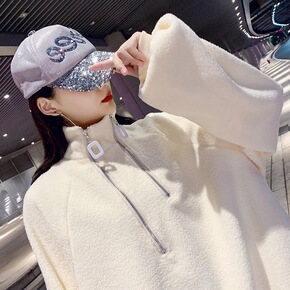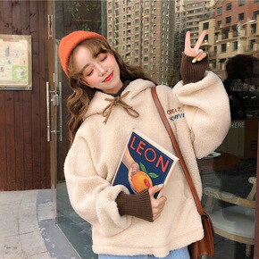 羊羔绒卫衣女秋冬2021年新款连帽宽松韩版加绒加厚...