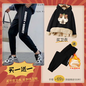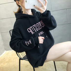 女装冬季加厚加绒卫衣女刺绣宽松大码休闲上衣连帽摇粒...