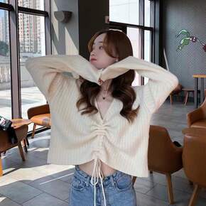 2022新款韩版撞色毛衣开衫女宽松甜美爱心针织衫外...