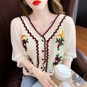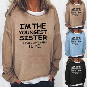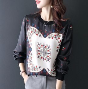 2022秋季新款印花长袖拼接绸缎针织衫卫衣女薄款休...