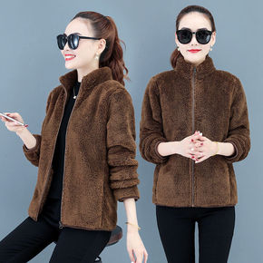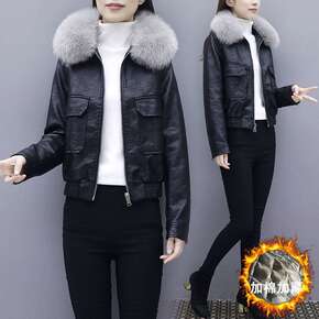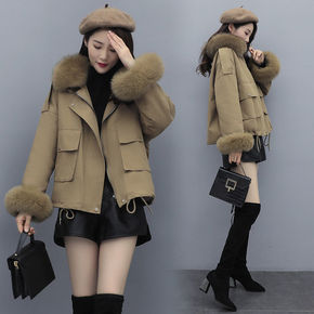 加厚绒外套女袖口加毛2021新款女装韩版冬季棉服大...