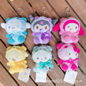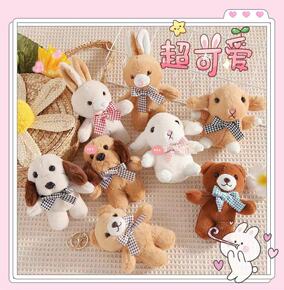 条纹玩偶公仔挂件毛绒公仔钥匙扣丑萌卡通兔子青蛙公仔...