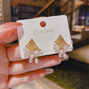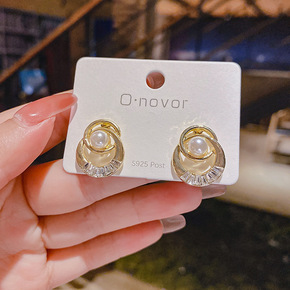 s925银针韩版极简夏季耳钉高级感网红夸张珍珠耳环...