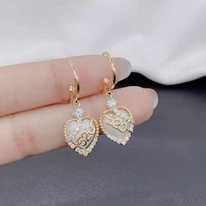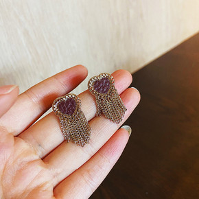 S925银针法式复古皮革爱心流苏耳环女简约气质网红...
