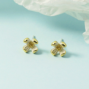 S925银针日韩国甜美风耳环简约款几何方形耳钉不规...