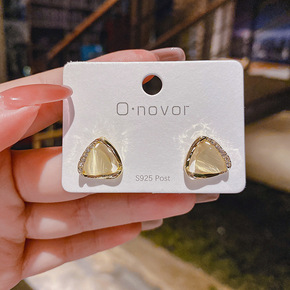 925银针网红ins猫眼石耳环设计款镀14K金韩版...