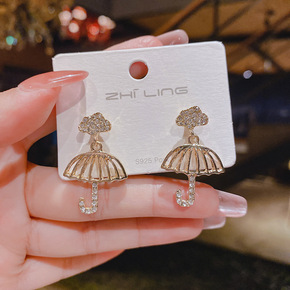 925银针爱的保护伞个性耳钉银针新品潮耳饰小众设计...