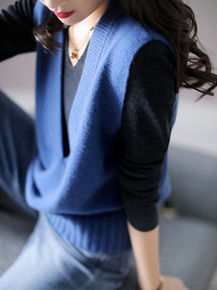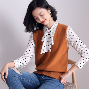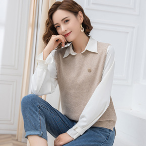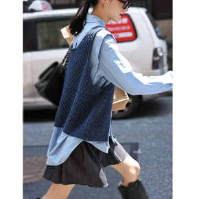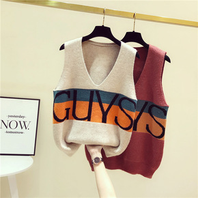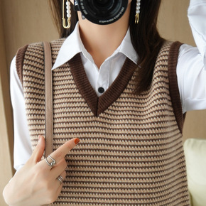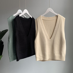 v领针织马甲背心女2021秋装新款宽松马夹外穿上衣...