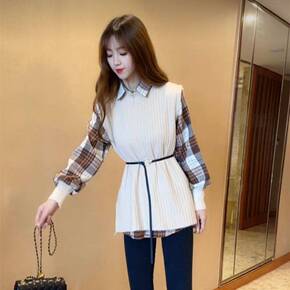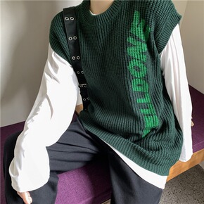 时尚学院风套头针织马甲背心2021秋装新款韩版圆领...