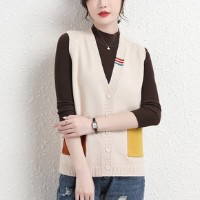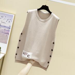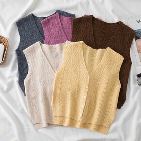 2021年春秋新款V领针织马甲纽扣背心开衫女外搭修...