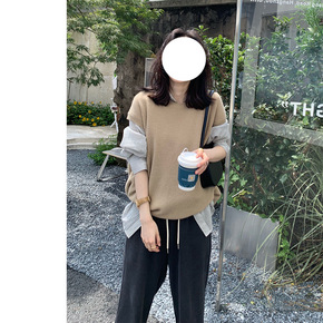 纯色针织马夹背心女外搭2021今年早秋季新款上衣圆...