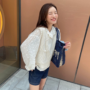 针织马甲女秋季薄款无袖学院风毛衣勾花外穿背心202...