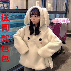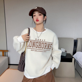 仿羊羔毛绒卫衣女2022冬季新款韩版宽松学生加绒加...