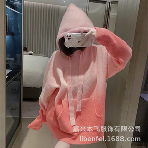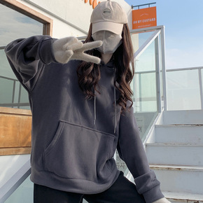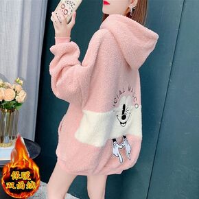 批发日系羊羔绒加厚卫衣女连帽大码女装秋冬新款慵懒风...