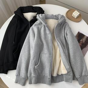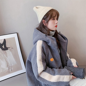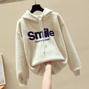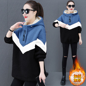 宽松韩版韩版羊羔绒加厚连帽卫衣女2022秋冬加绒保...
