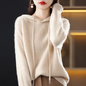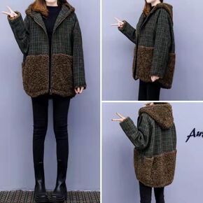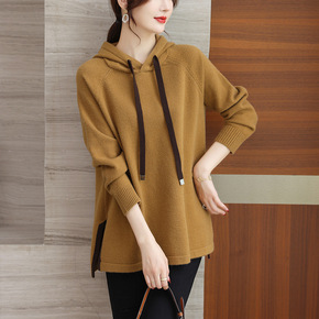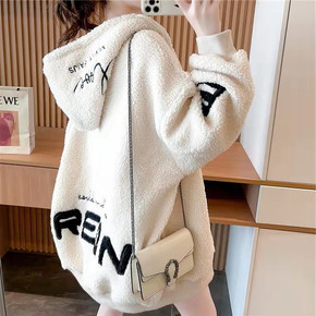 2022秋冬新款韩版宽松慵懒风加厚连帽开衫中长款羊...