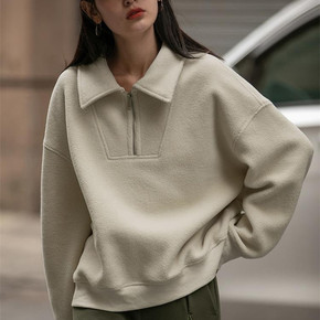 13半拉链POLO领套头卫衣女2022冬季设计感摇...