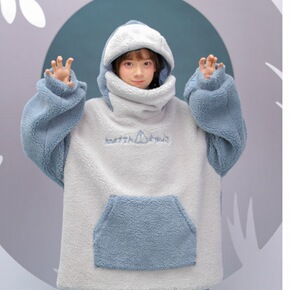 自闭鲨鱼卫衣2022秋冬季加绒加厚羊羔绒设计感小众...