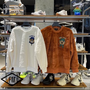 MLB皱眉熊刺绣印花毛绒卫衣男女同款韩版NY羊羔毛...