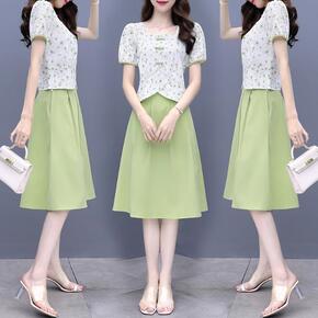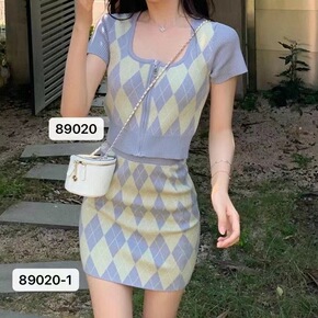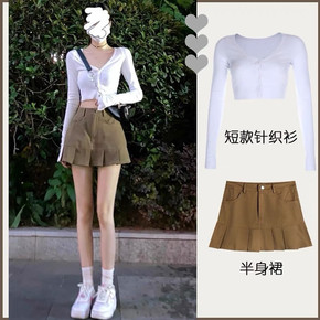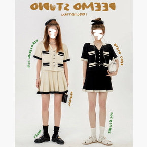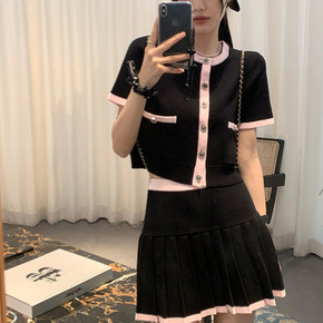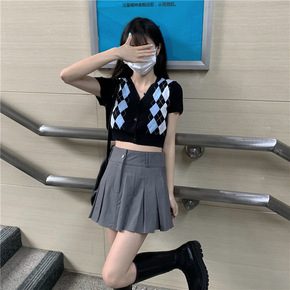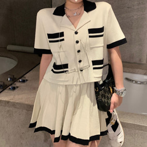 小个子套装女菱格针织上衣百褶半身裙2022年新款夏...