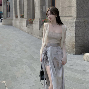 卓娅现货2022夏季时尚女装套装针织马甲背心开衫外...