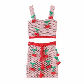 手工钩织立体草莓镂空毛线套装女 2021新款方领短...
