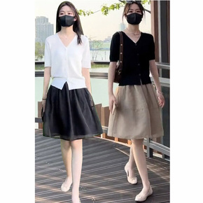 SROOM夏季甜美两件套装气质温柔浪漫小众短袖针织...