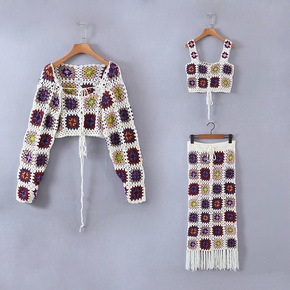 2022 9981春季新款欧美纯手工祖母格上衣+背...