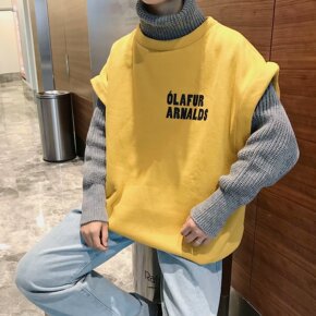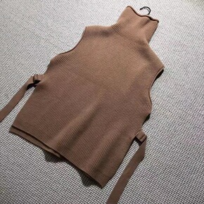 早春款焦糖色廓形高领无袖针织衫套头马甲背心宽松外穿...