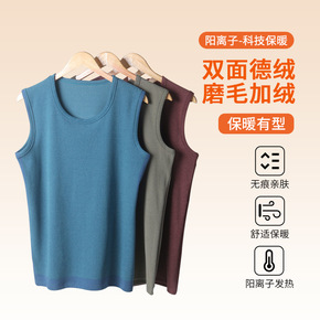 德绒冬季保暖背心男士无痕加绒加厚双面磨毛马甲发热打...