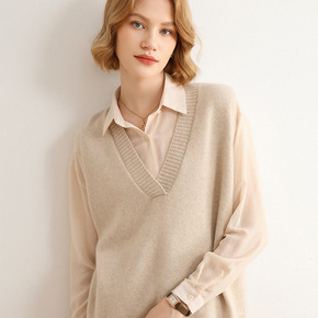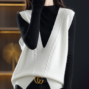 叠穿简约V领软糯客供羊毛厚针织背心马甲女秋冬新款2...
