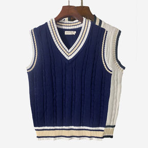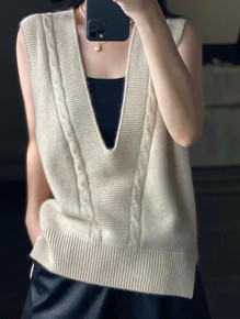 复古港味V领麻花针织马甲女装秋季2021新款宽松外...